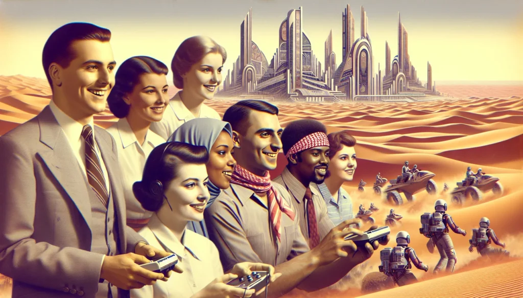 You navigate a persistent, shared world on the planet Arrakis, competing and cooperating with other players. The environment includes sandstorms, shifting dunes, and limited resources, creating challenges that demand strategic planning.